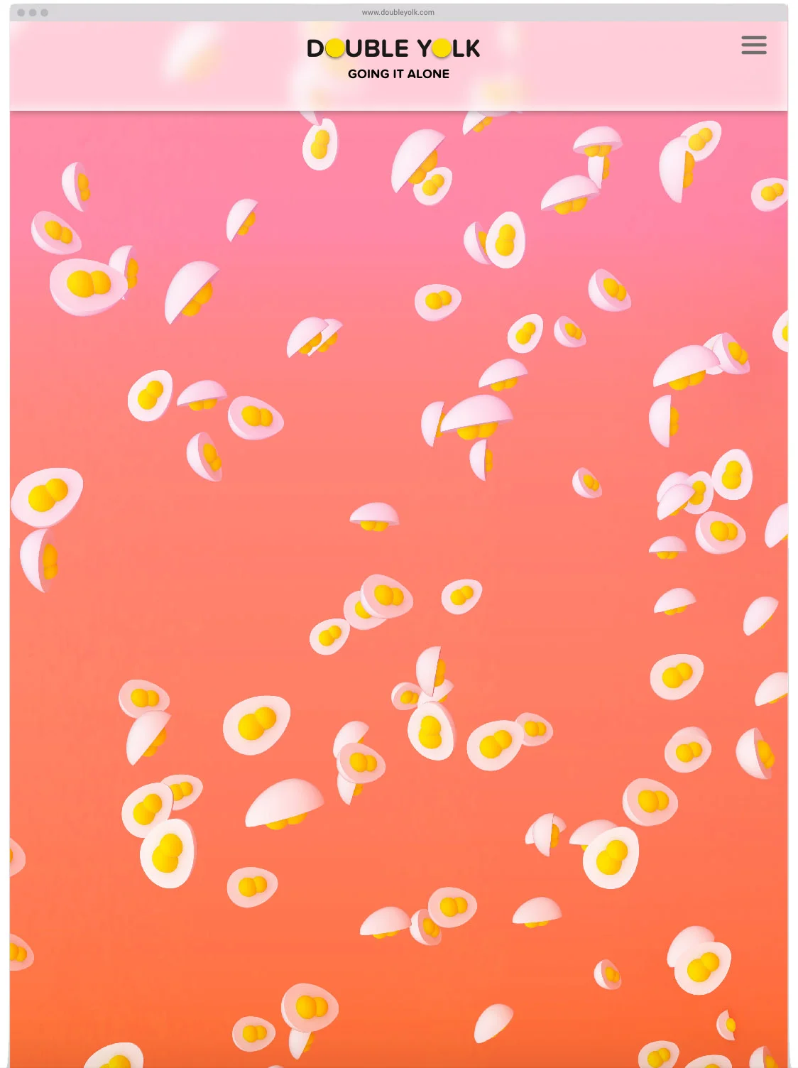 Double Yolk Teaser 1 Here's a screenshot from a long continuous scroll on the future Double Yolk splash page: Adrianne NgamNovember 3, 2015Comment Facebook0 Twitter LinkedIn0 Reddit Tumblr 0 Likes